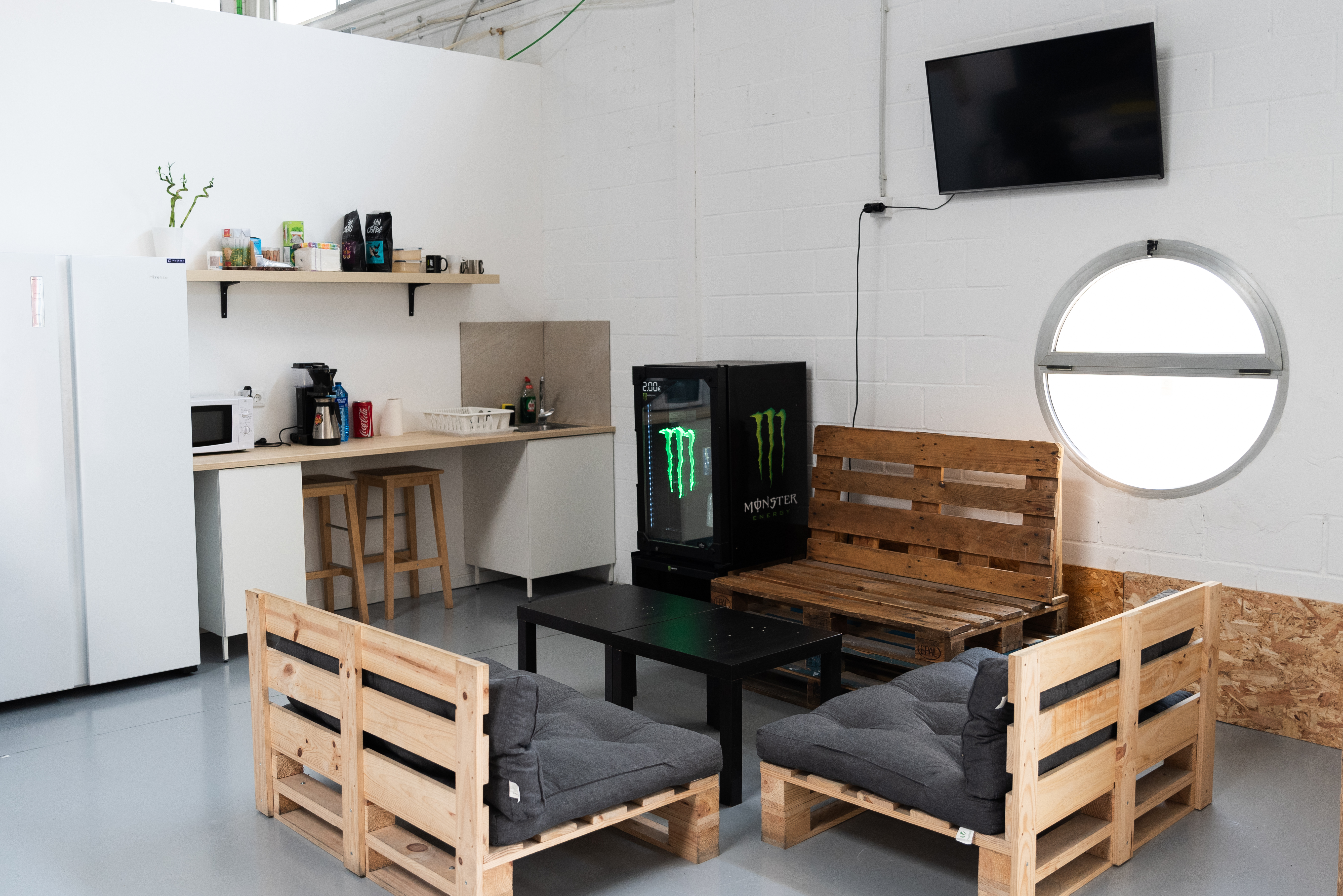 Fuera de la zona de entrenamiento las instalaciones cuentan vestuarios masculino y femenino equipados con todo lo necesario, un área de descanso con cocina, nevera, cafetera, etc, y un espacio para dejar tus cosas mientras entrenas.